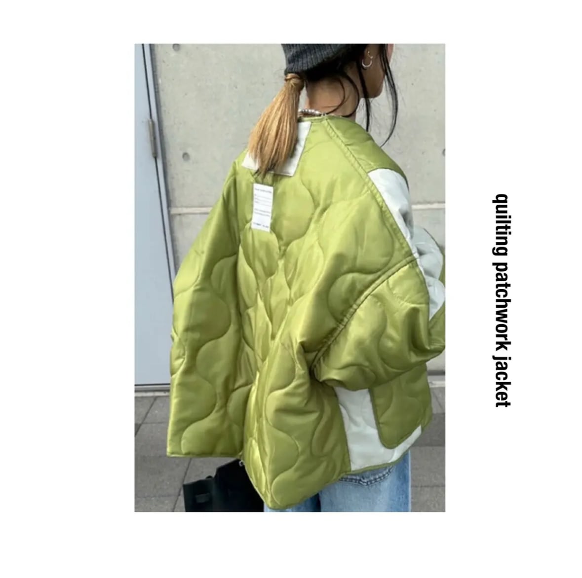 再入荷です! パッチワークとdead stockなデザインのブルゾンバージョン、ボディーから袖にかけてのシルエットも今っぽい1枚。ショート目な丈はスタイルアップにも◎ 後ろのデザインもかわいい♡ 着丈59.5cm 肩幅68.5cm バスト幅69cm 袖丈49cm 表地:ポリエステル100% 裏地:ポリエステル100% 中綿:ポリエステル100% color green
