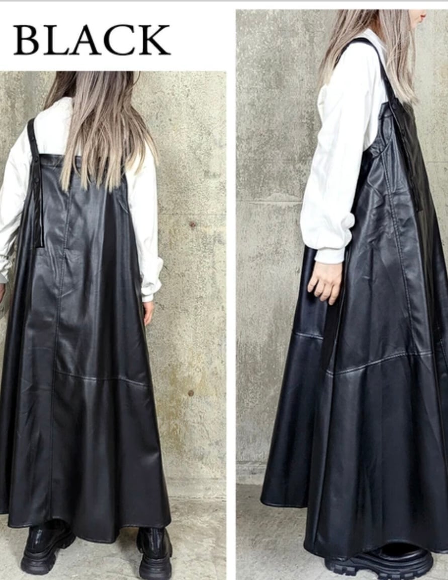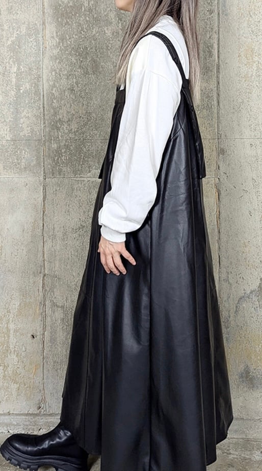 ◉eco leather salopette skirt◉