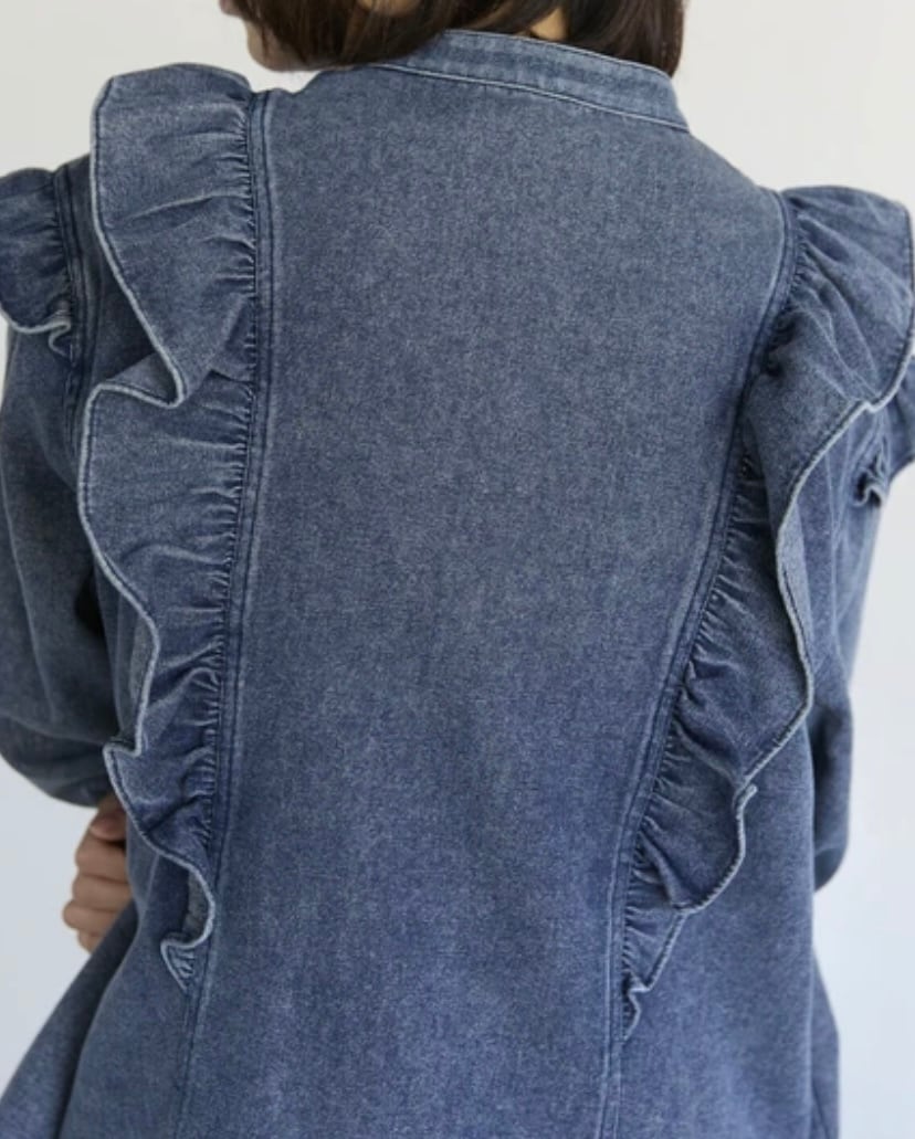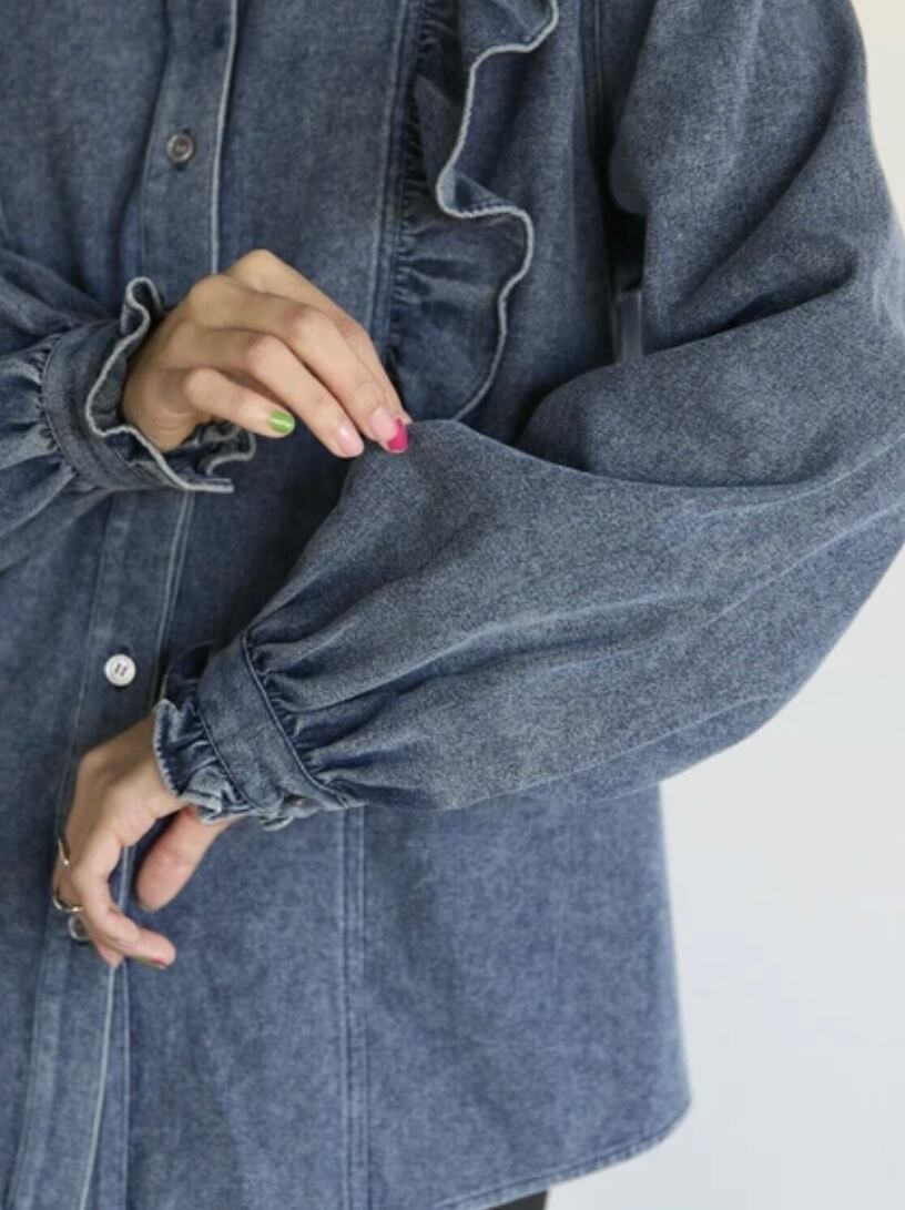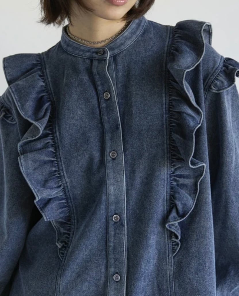 【ヴィンテージ感漂うデニムフリルシャツ】