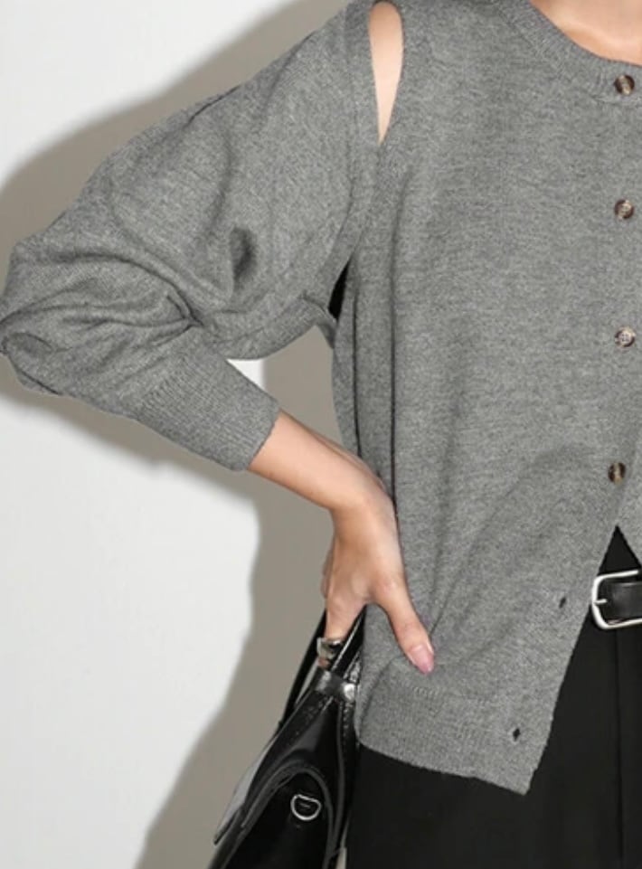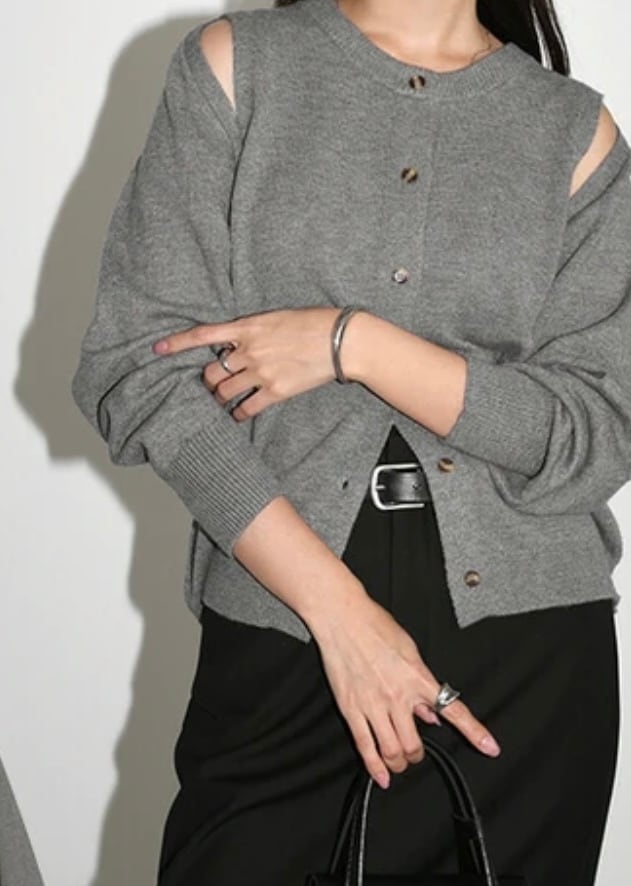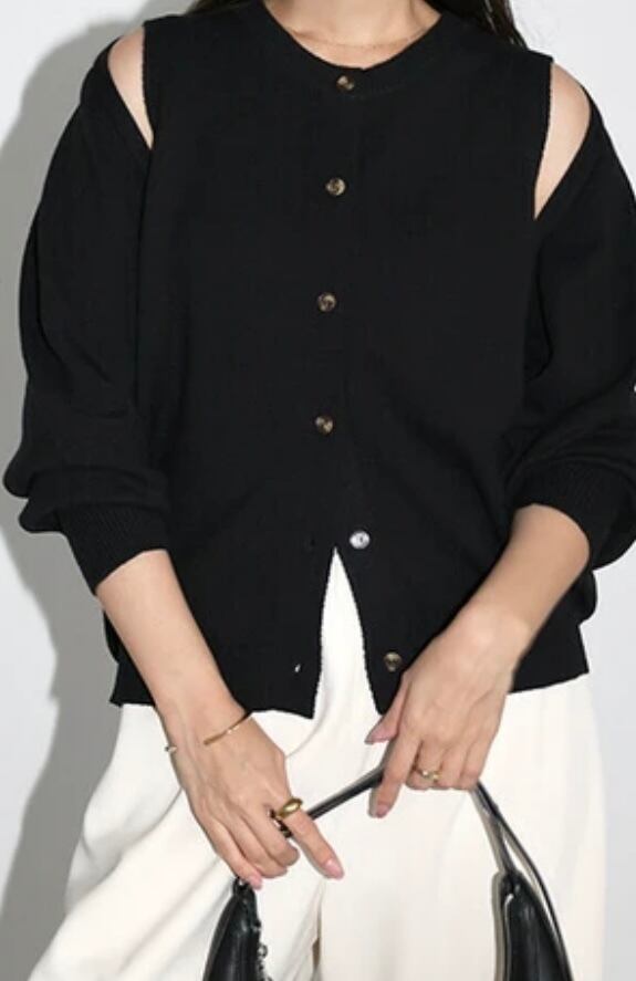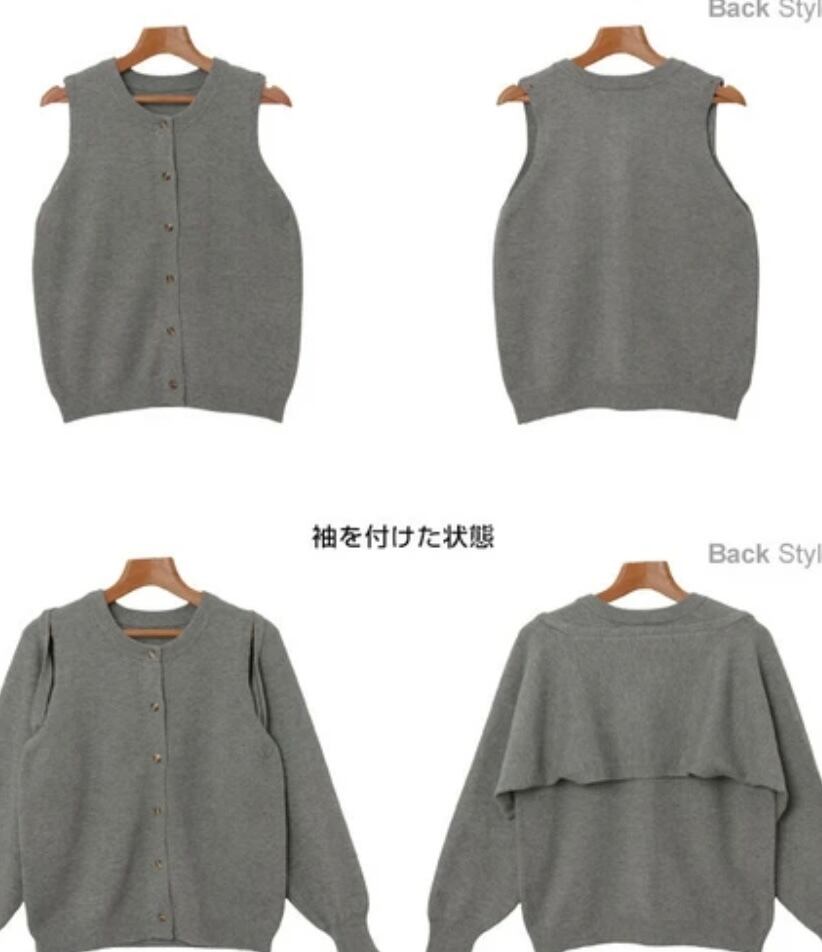 ボレロ型の袖はボタンで着脱でき、気分や気候に合わせてベストとしても着用可能です。