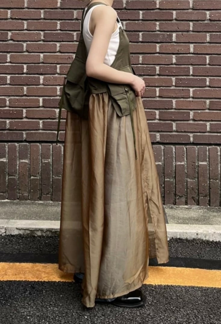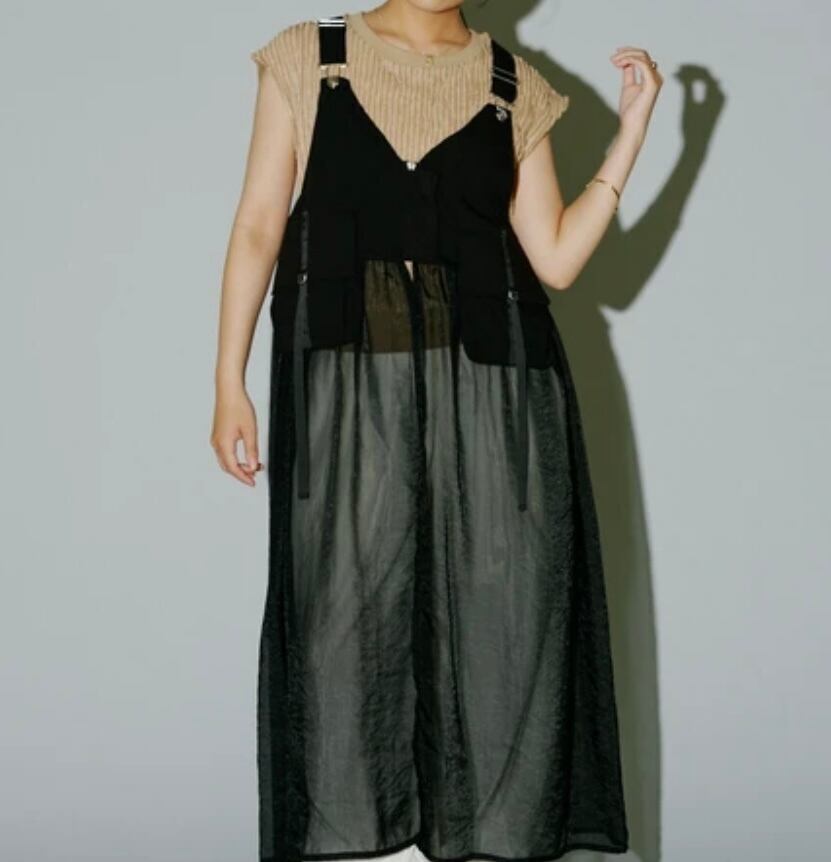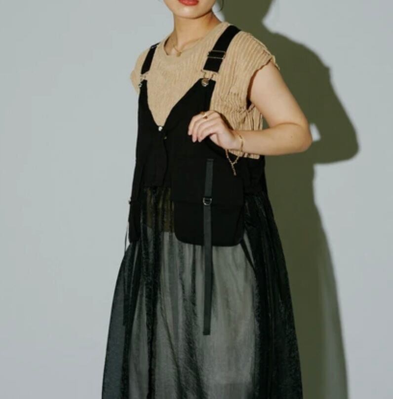 スカート部分はシアー素材になっており、ボトムスとのレイヤードを楽しめるアイテムです。