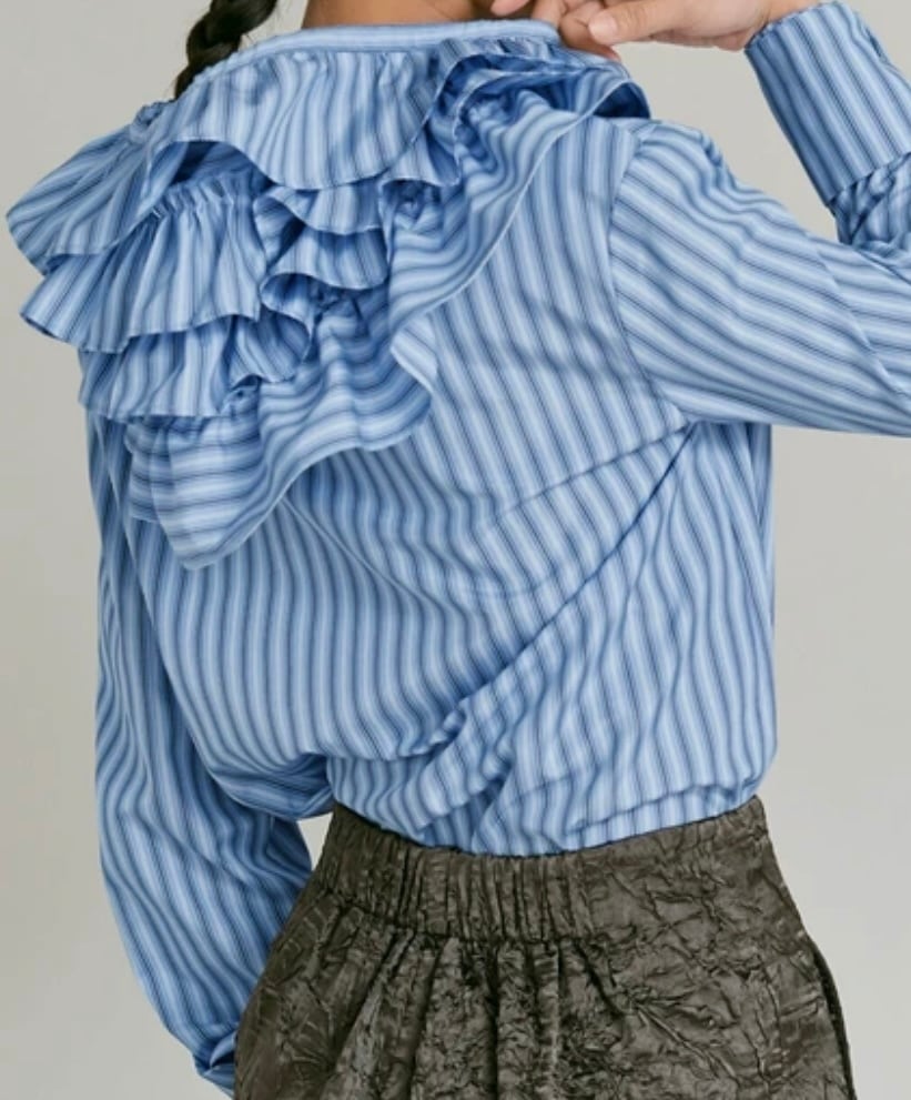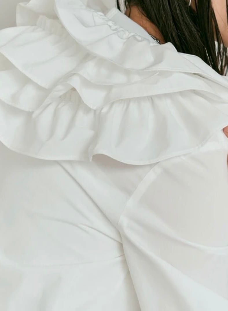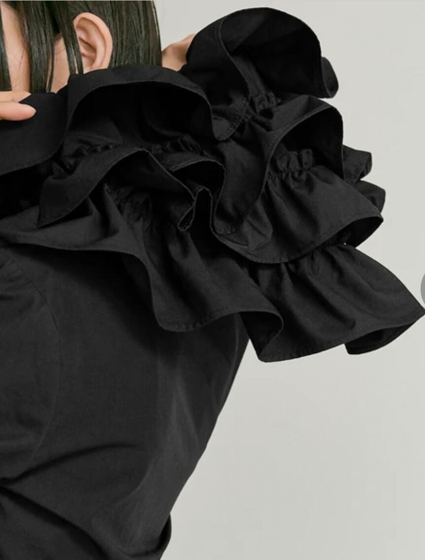 シワになりにくく、ハリのある生地を使用し、立体的でボリューミーなフリルを表現しました。