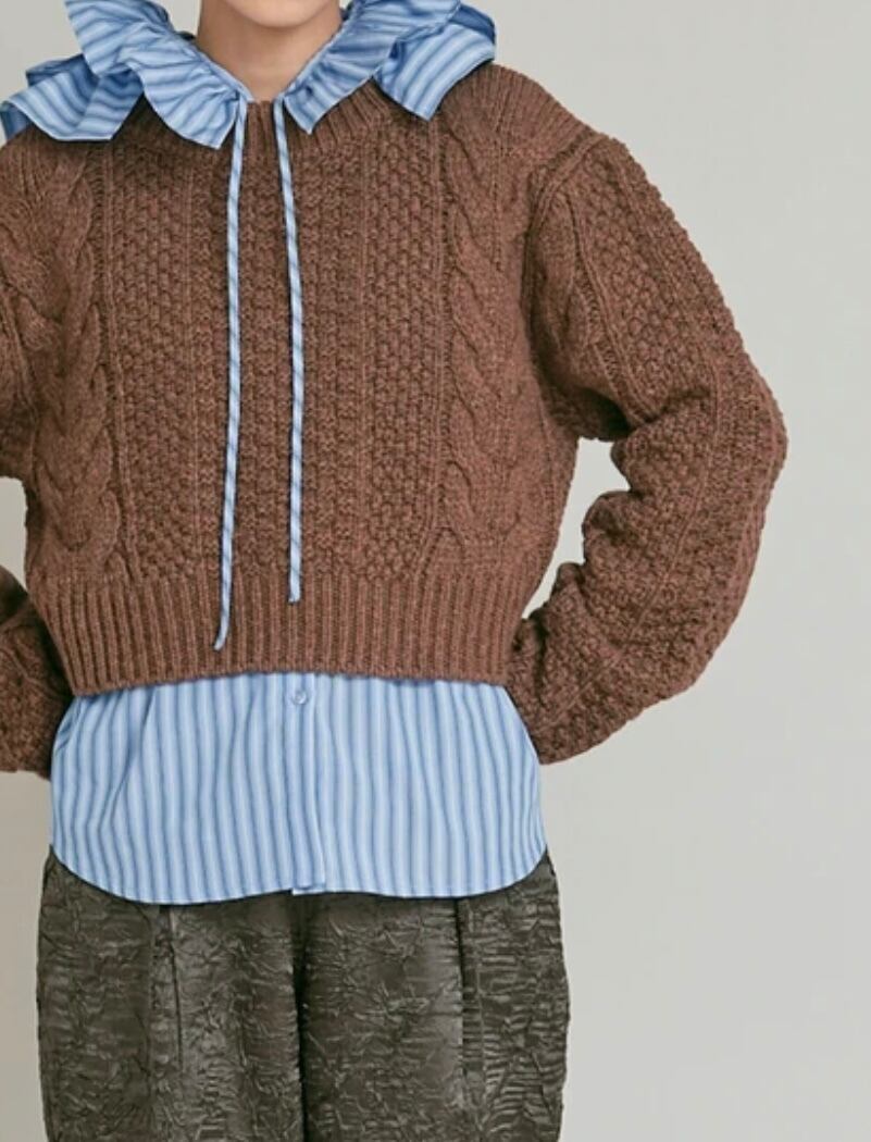 首元の紐をキュッと絞ると、より立体感のある襟元を演出します。