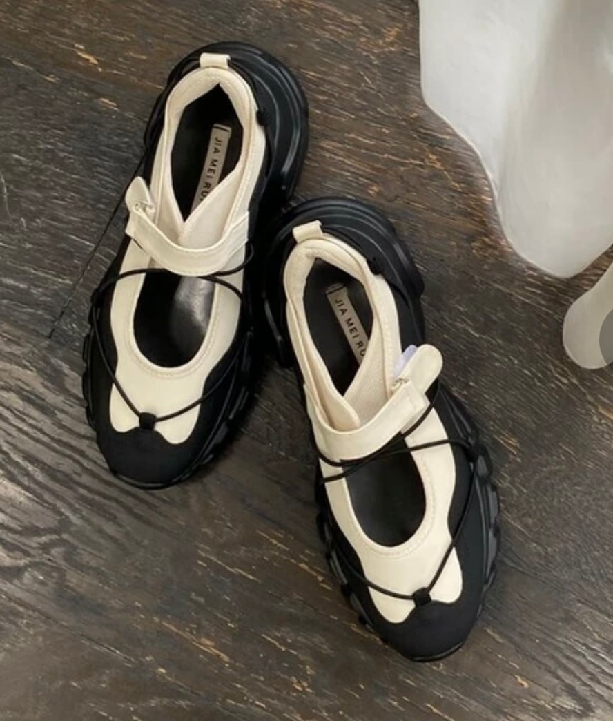 メリージェーン型厚底デザインのスニーカーです。軽量なソールと足をしっかりホールドする形状やストラップ仕様はかわいさだけではなく安定感ある履き心地です。今年らしいアイテムでスタイリングも決まる1足です。