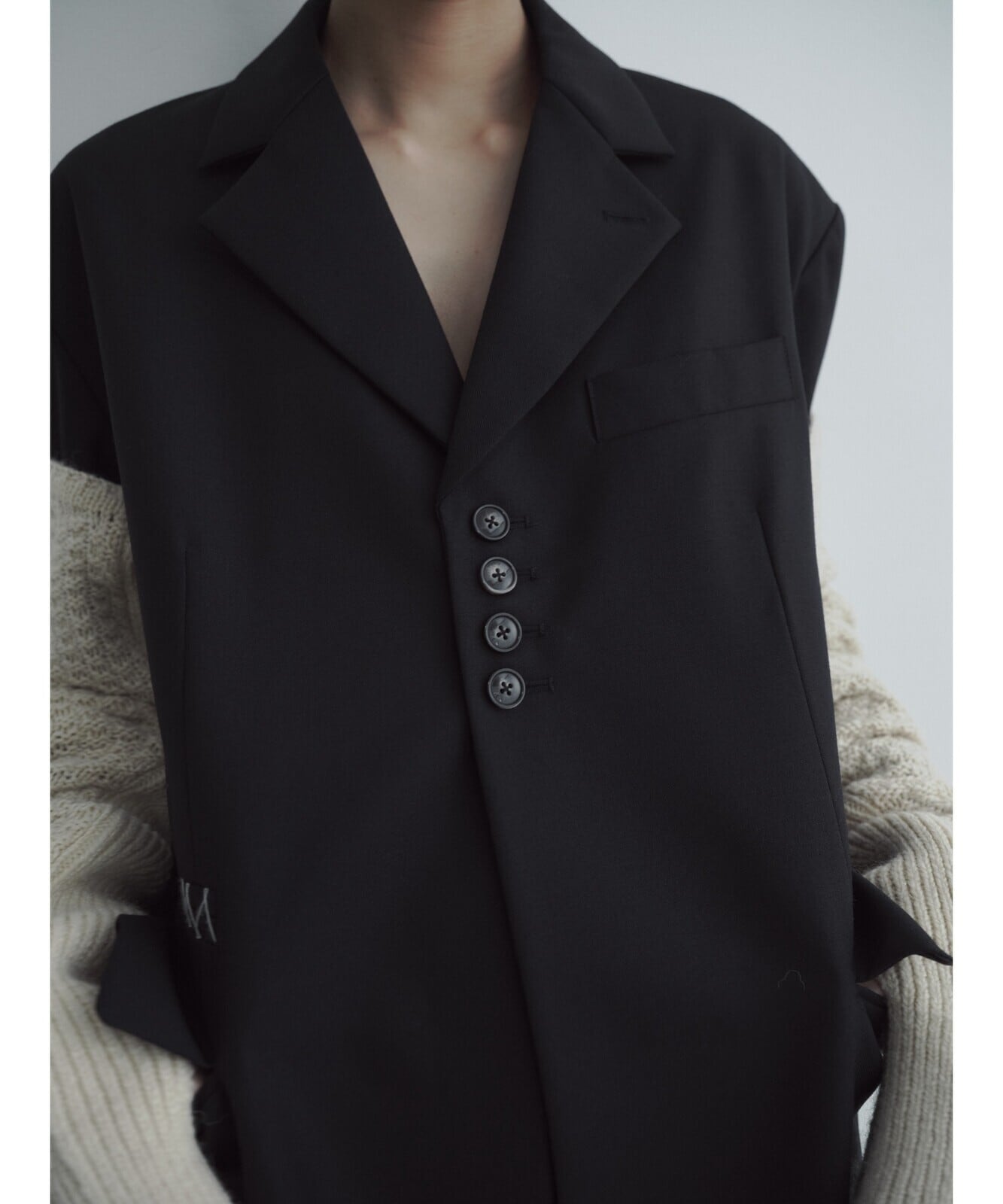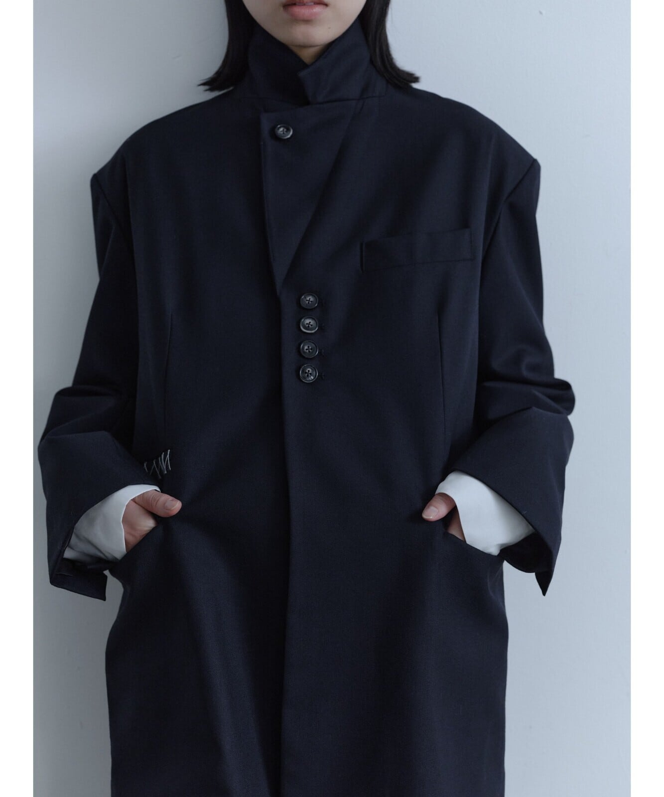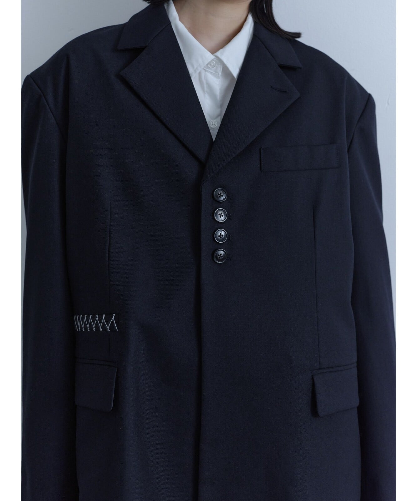 間隔を寄せたフロントボタンのバランスが絶妙でこだわりが詰まった今季のジャケットです。