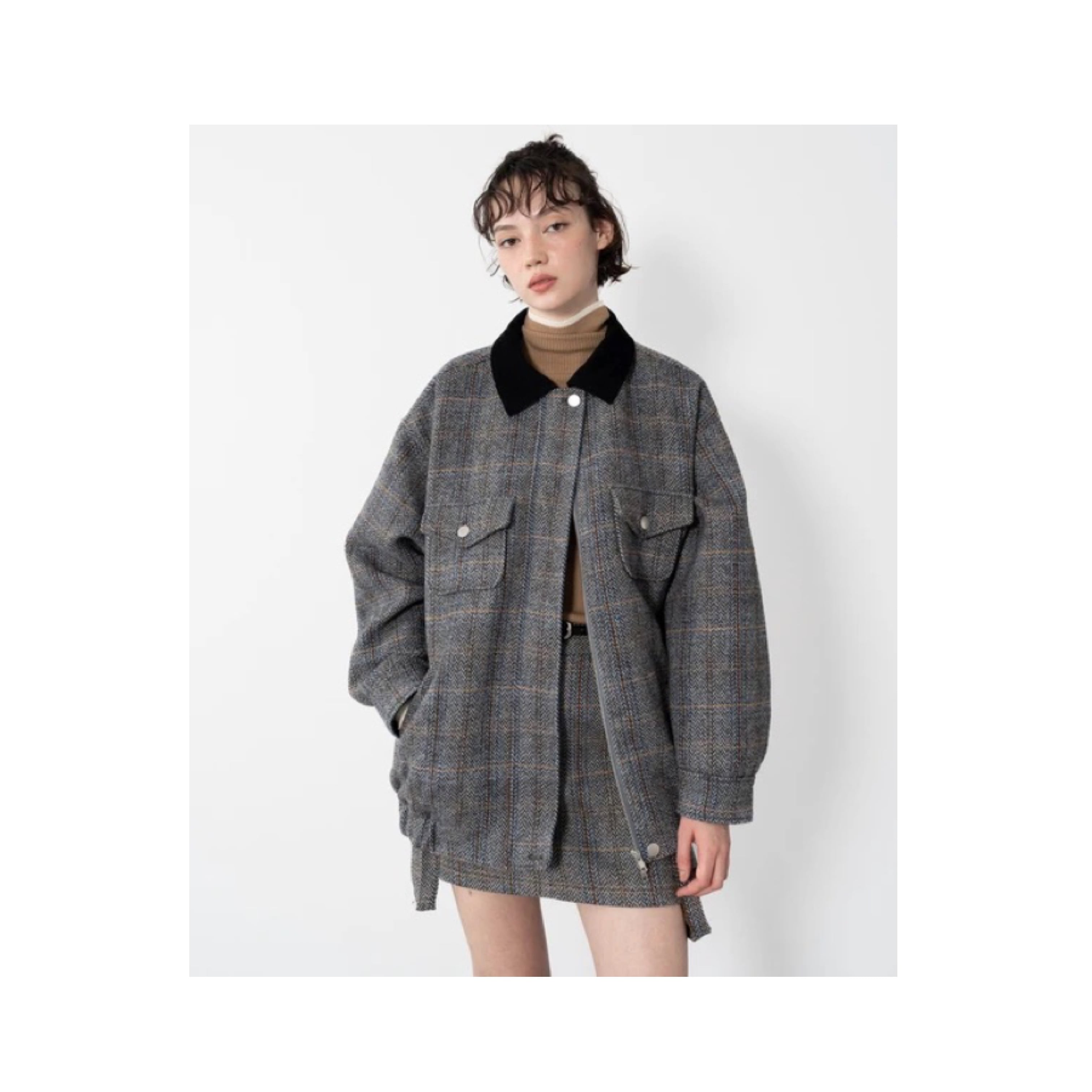 ウールブレンドで温かく、切り替え襟とフロントのボケットがさりげなくアクセントをプラス。グレーは奥行き感のあるヘリンボーン素材でトラッドムード漂う一着。