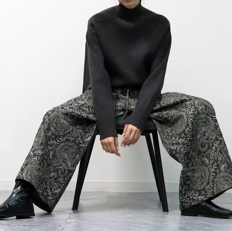 穿くだけで主役級の存在感ながら、ジャカードの質感で"映える"を足すのがおすすめの着こなしです。