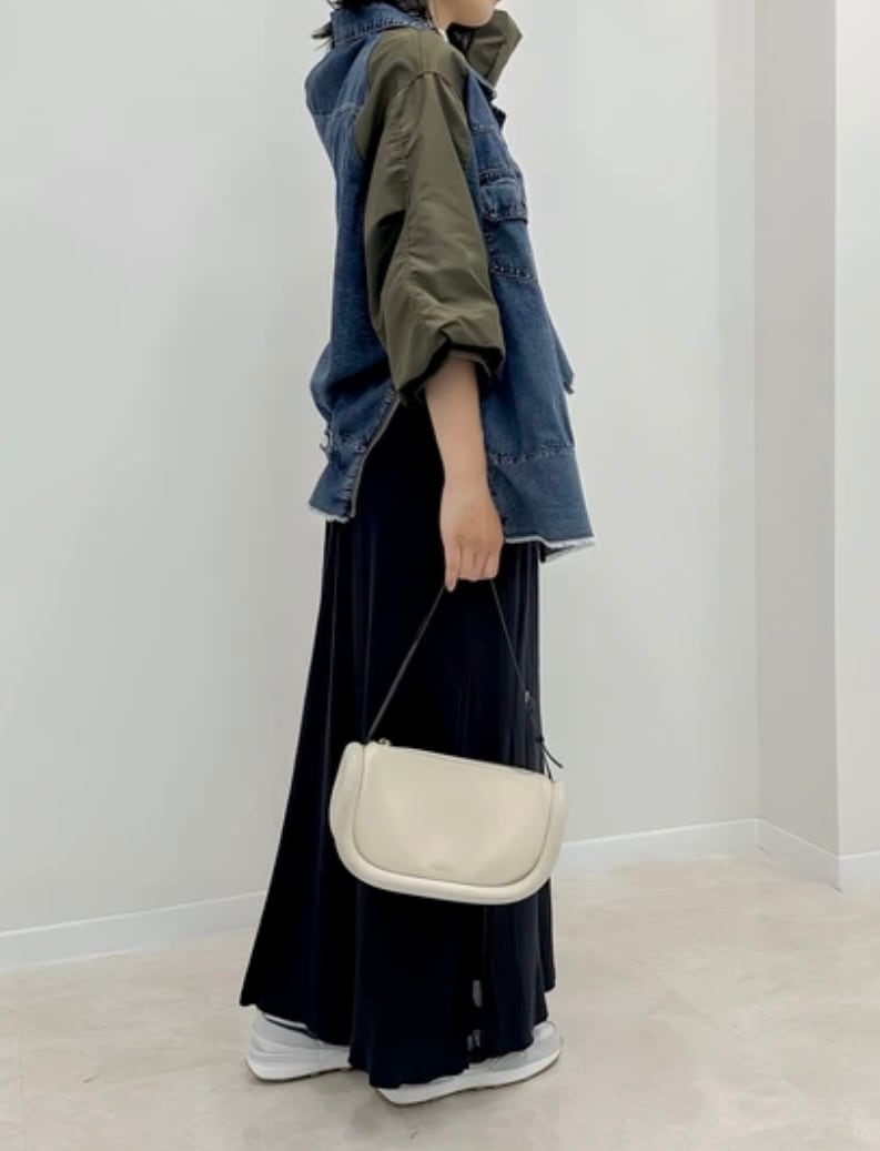 丸みのあるシルエットでメンズライクになりすぎず、ボリュームのある袖シルエットなので、厚手のトップスを着てもごわつきません。