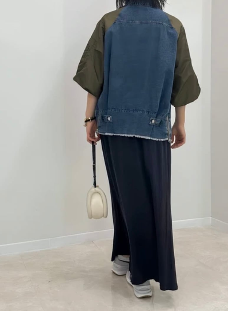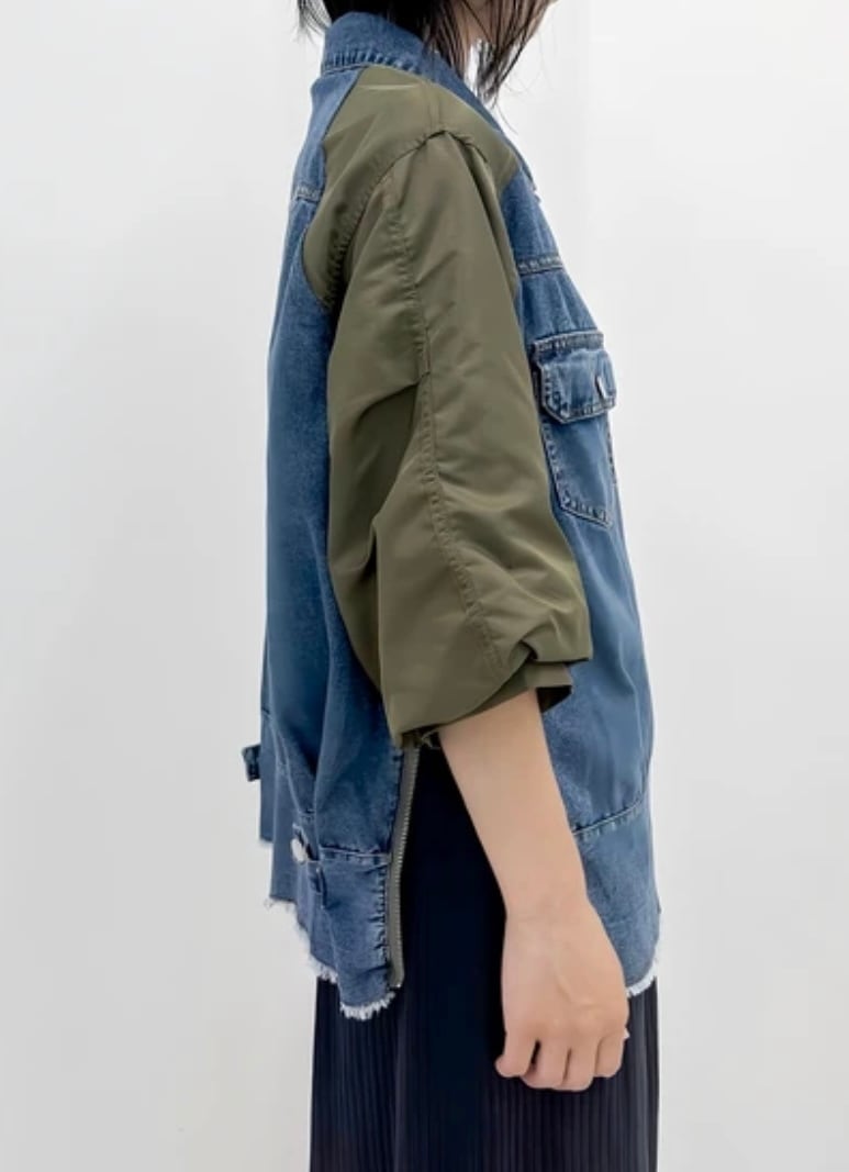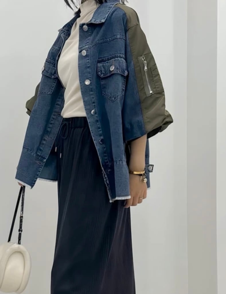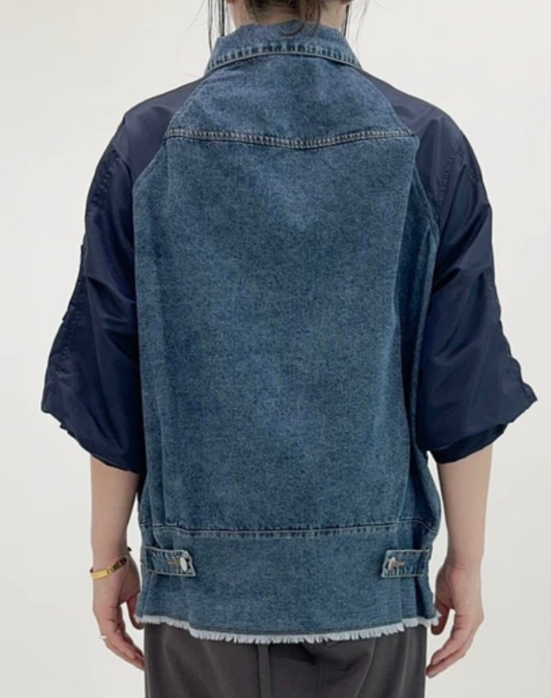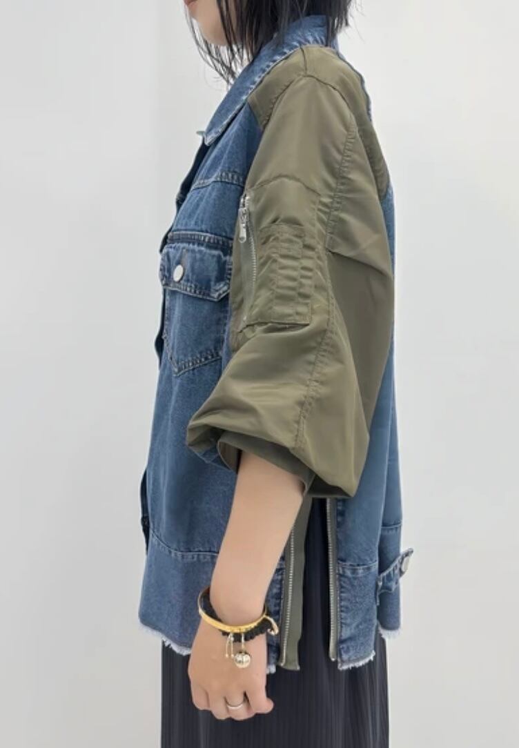 デニムとMA-1のナイロン素材の異素材ミツクスが魅的で存在感のある一枚に。