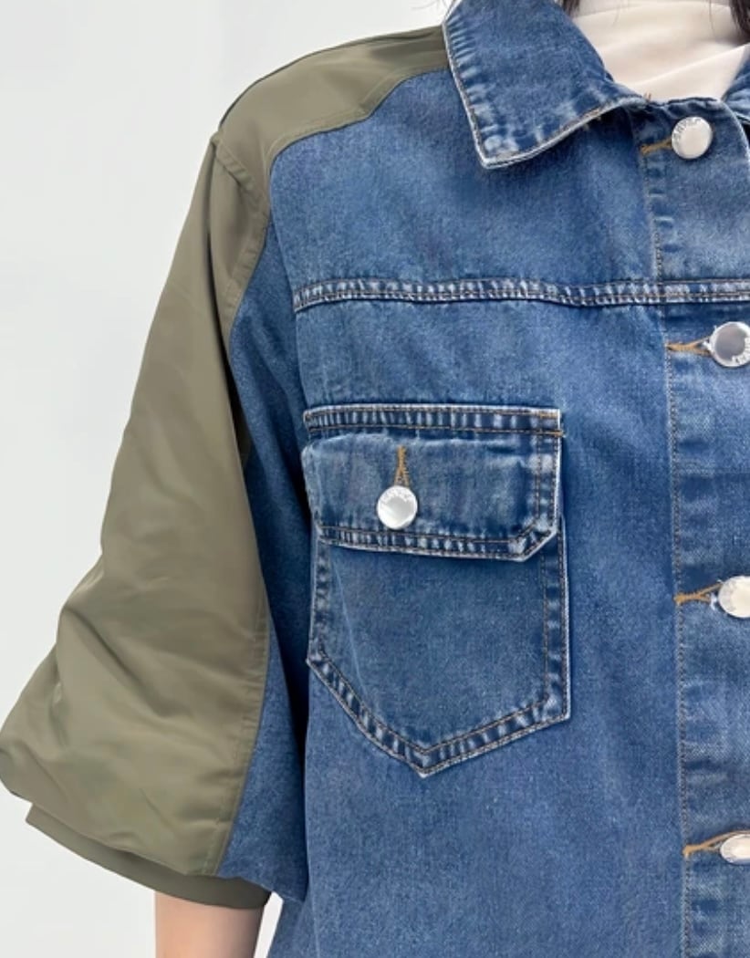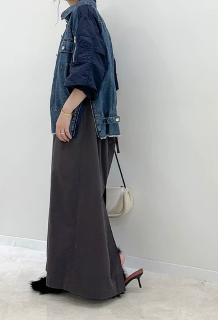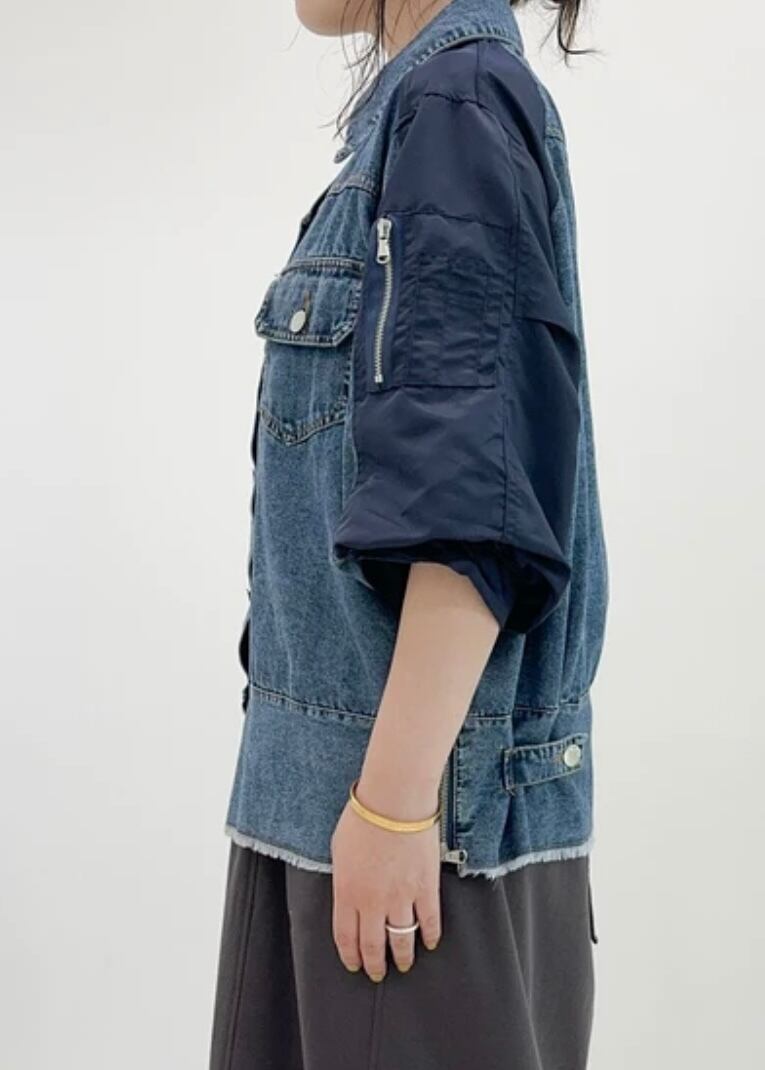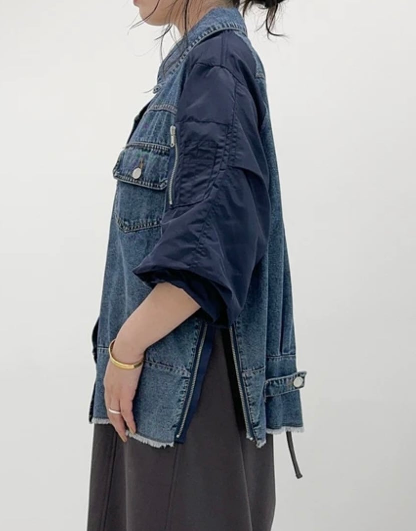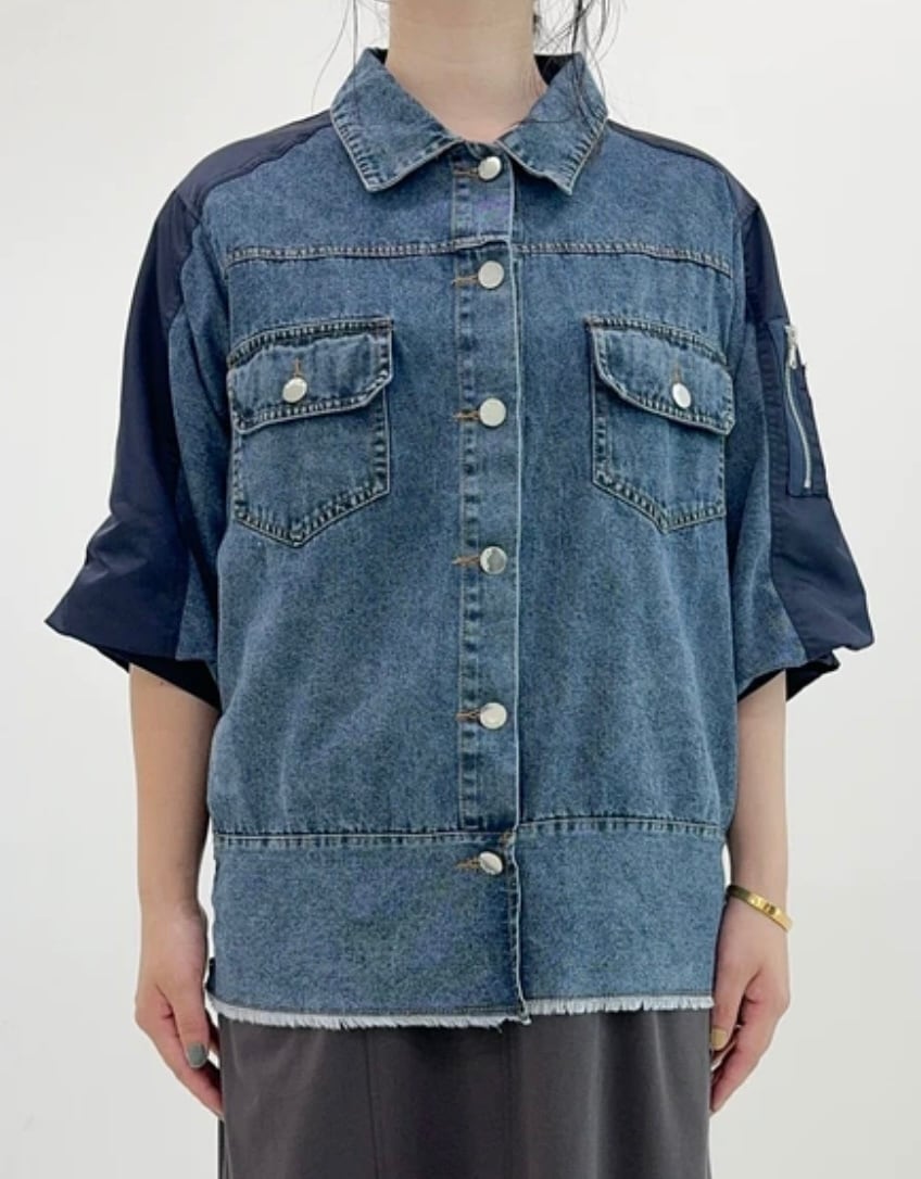 デニムとMA-1のナイロン素材の異素材ミツクスが魅的で存在感のある一枚に。