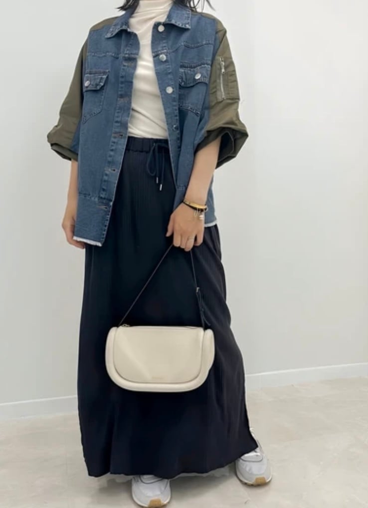 普段のカジュアルなコーデにはもちろん、フェミニンなワンピースの上や、スカート合わせも◎ (モデル身長158cm)