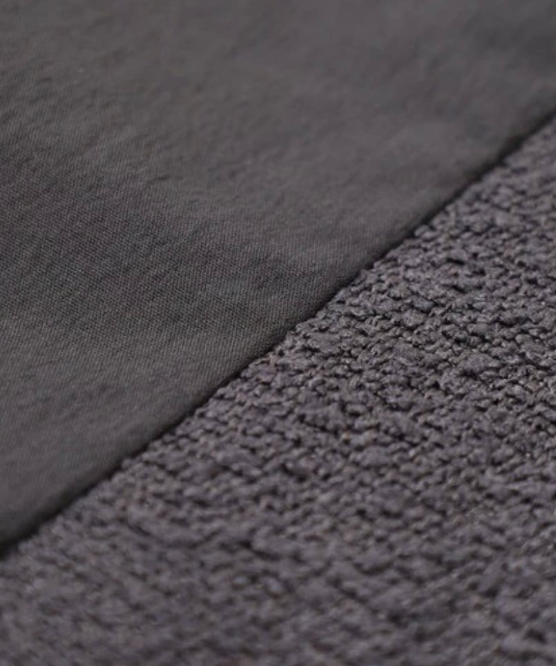 フロント部分にはブークル(ループヤーン)素材を使用し、ふっくらとした質感と柔らかいタッチが特徴。