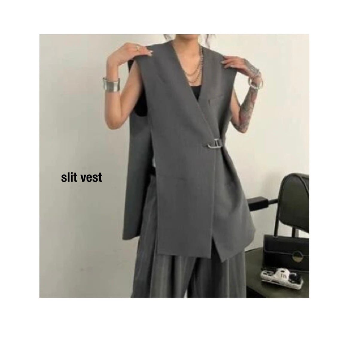 スリットデザインがアクセントのスタイリッシュなベスト。