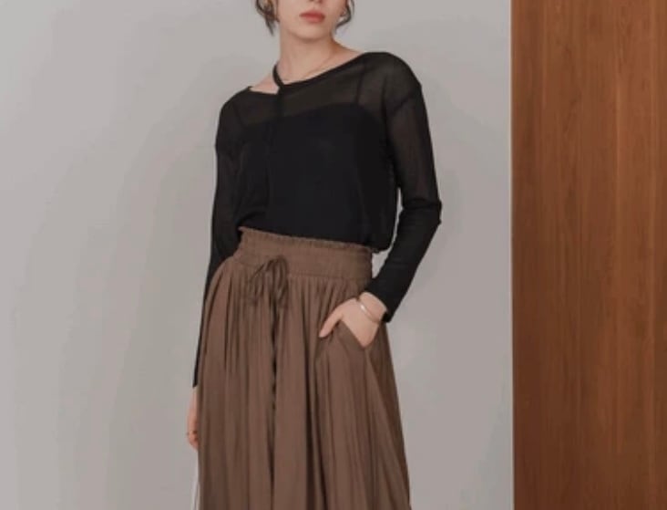 デニムやワイドパンツと合わせてカジュアルに、スカートと合わせてフェミニンにも