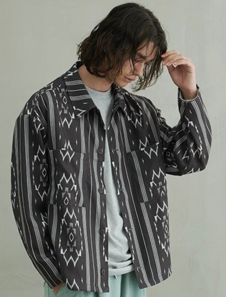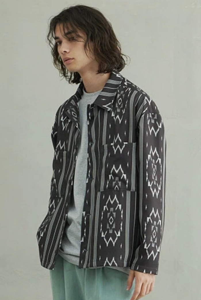 ・レトロな総柄プリントが特徴のブッチャージャケット