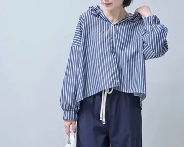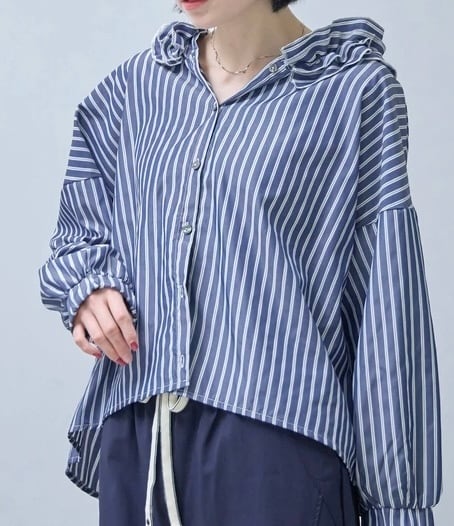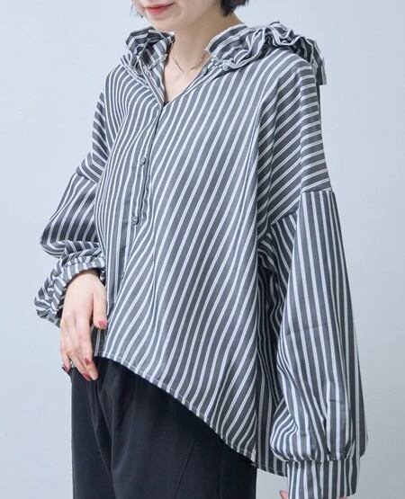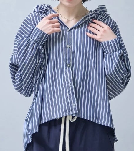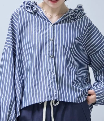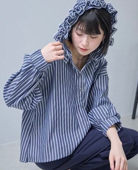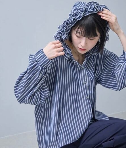 フードがフリルのストライプのブラウス
