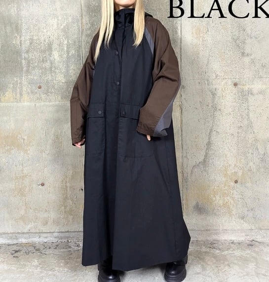 3カラー配色BIGロングフードコート