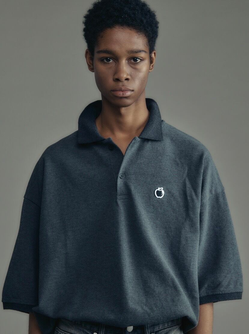 胸元にはブランドアイコン"BITE APPLE”をワンポイントで配置し、ミニマルな佇まいの中にさりげない個性を添えています。