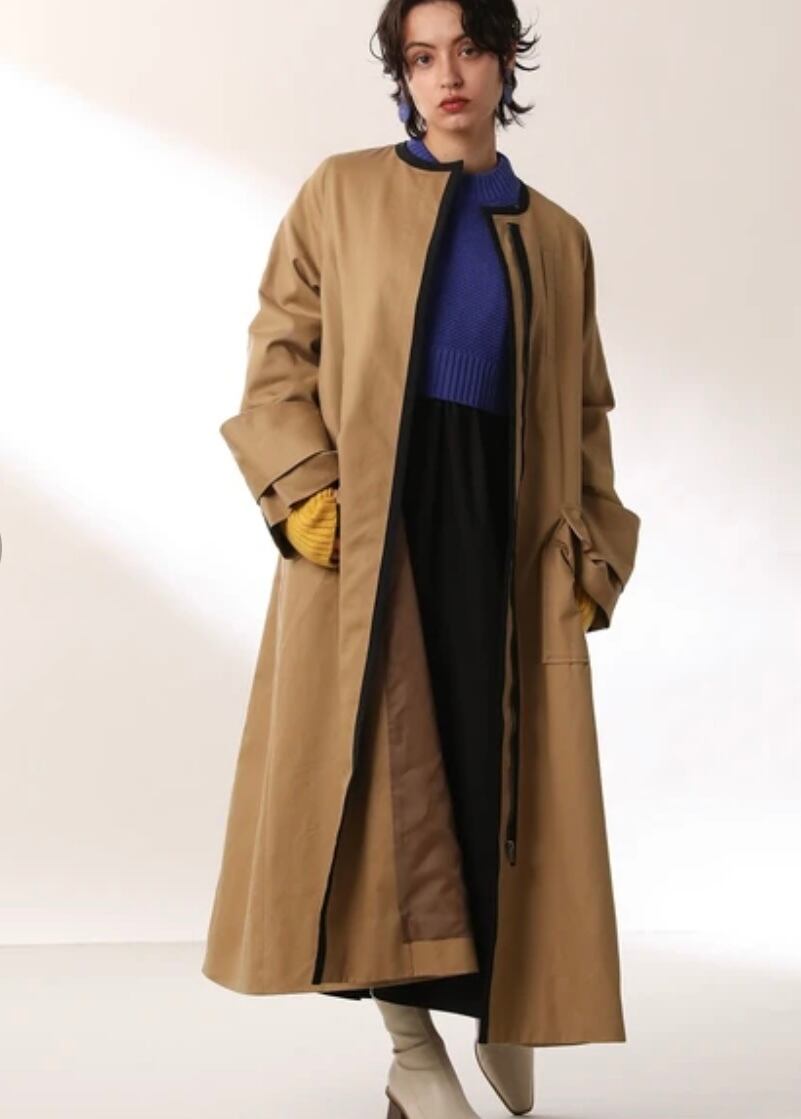 袖口が太く、大きめのボケットはリラックスしたムードを演出。総表地なのでコートを脱いだ時も高見えし、優雅さも備えた大人コートです。