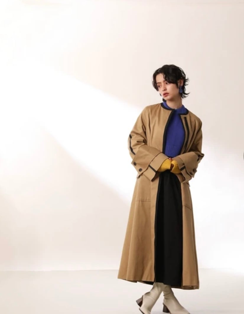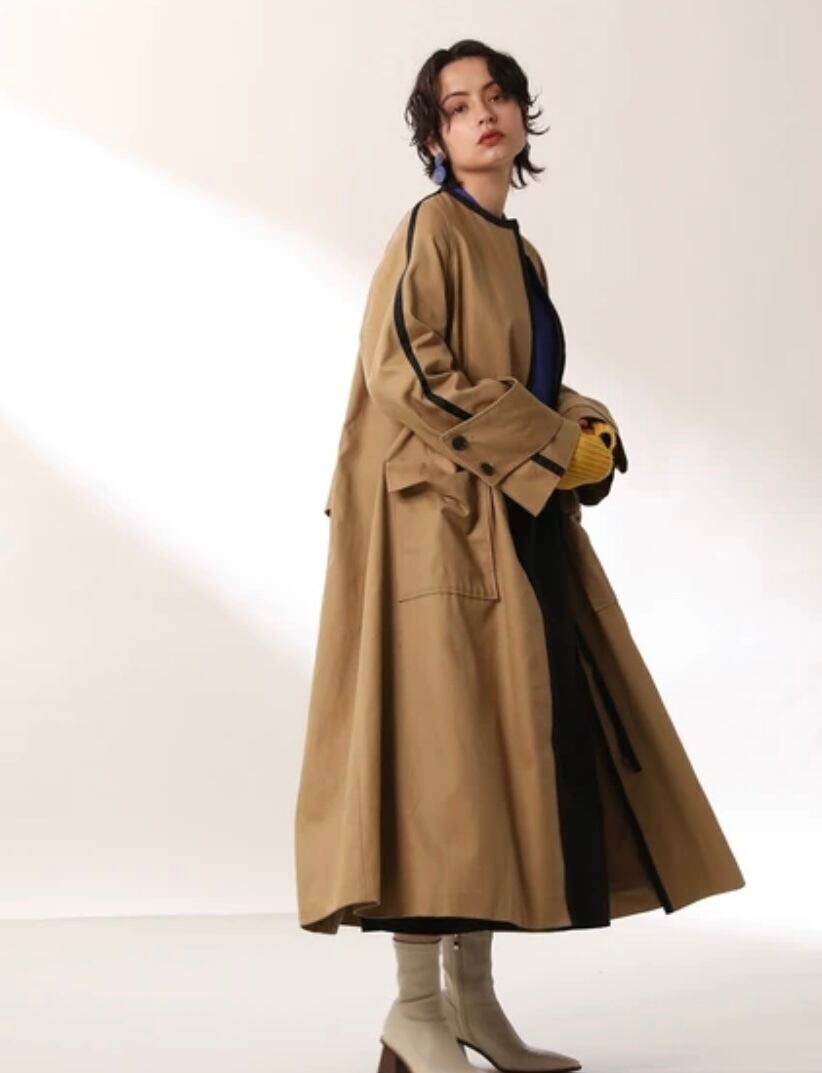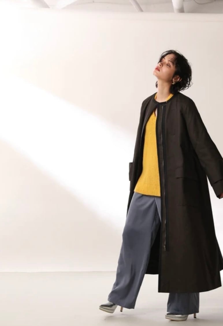 着丈は125cmと長めですが、グログランのトリミングがアクセントになり、シャープで軽やかな印象を与えてくれます。